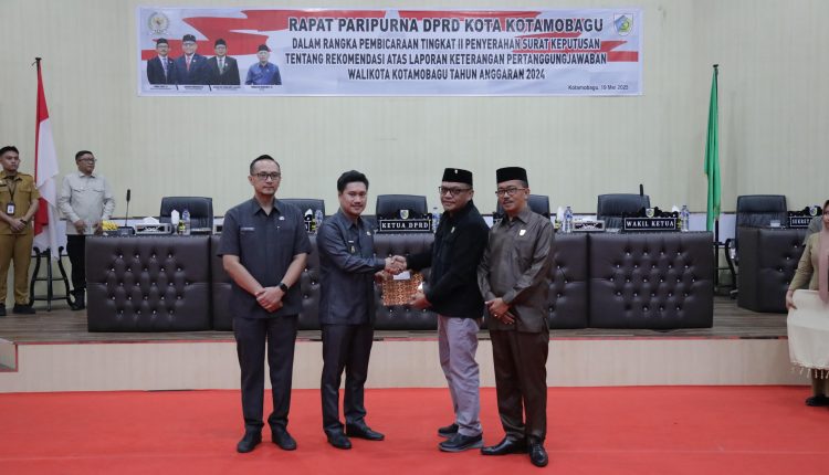 Telusur.news, KOTAMOBAGU Wakil Wali Kota Kotamobagu, Rendy Virgiawan Mangkat., S.H., M.H., Hadiri Rapat Paripurna DPRD Kota Kotamobagu dalam rangka Pembicaraan Tingkat II Penyerahan Surat Keputusan Tentang Rekomendasi atas LKPJ Wali Kota Kotamobagu Tahun Anggaran 2024.