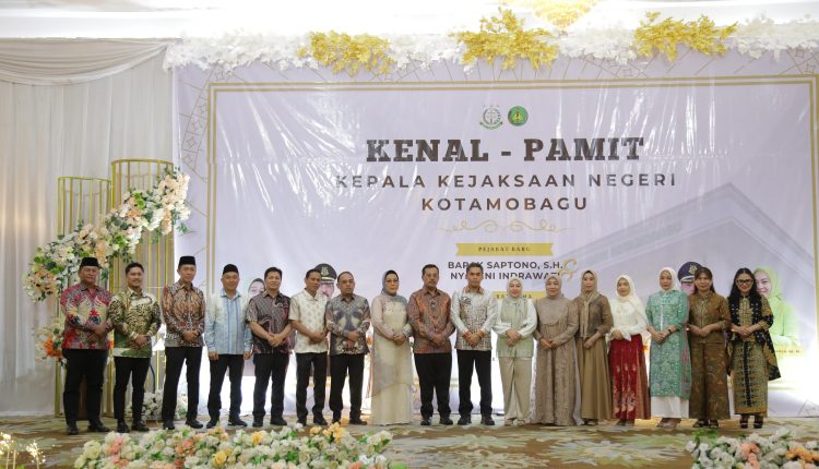 Kenal Pamit Kepala Kejaksaan Negeri Kotamobagu, dari Pejabat Lama, Ewin Agustian Khahar, S.H., M.H dan Pejabat Baru, Saptono, S.H., tersebut, juga dihadiri para Bupati, Wakil Bupati, para Anggota Forum Koordinasi Pimpinan Daerah, Para Pimpinan dan Anggota DPRD, Anggota DPRD Provinsi Sulawesi Utara, para Sekretaris Daerah, para Asisten, dan Pimpinan OPD se – Bolaang Mongondow Raya, para Pimpinan Instansi Vertikal, Pimpinan Perguruan Tinggi, Pimpinan Perbankan, BUMN dan BUMD, Tokoh Agama, Tokoh Masyarakat, Tokoh Adat, Tokoh Pemuda dan Tokoh Perempuan se – Bolaang Mongondow Raya.