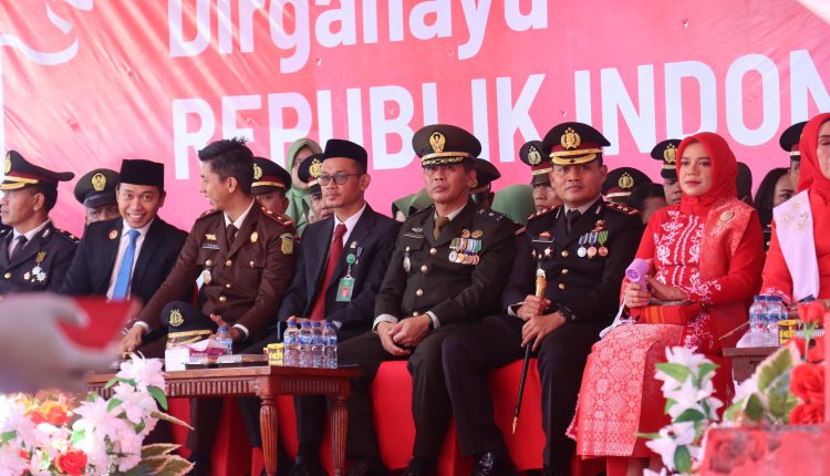 Telusur.news, BOLSEL – Kapolres Bolaang Mongondow Selatan (Bolsel) AKBP Kuntadi Budi Pranoto, bersama jajaran Polres dan Bhayangkari menghadiri upacara peringatan Hari Ulang Tahun (HUT) ke-80 Kemerdekaan Republik Indonesia, yang digelar di Alun-Alun Molibagu, Minggu (17/8/2025).