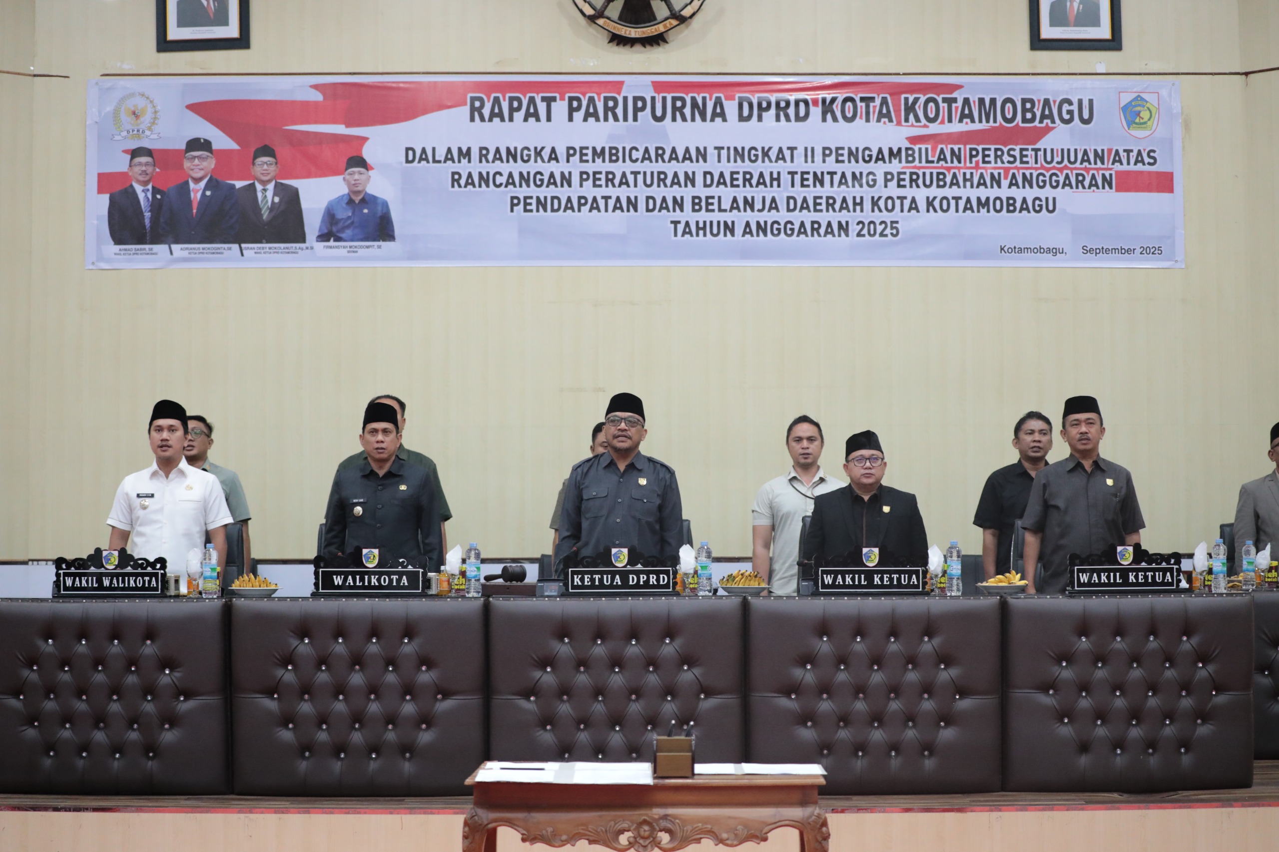 Wali Kota dan Wakil Wali Kota Kotamobagu hadiri Rapat Paripurna DPRD dalam rangka persetujuan Perubahan APBD Tahun Anggaran 2025.