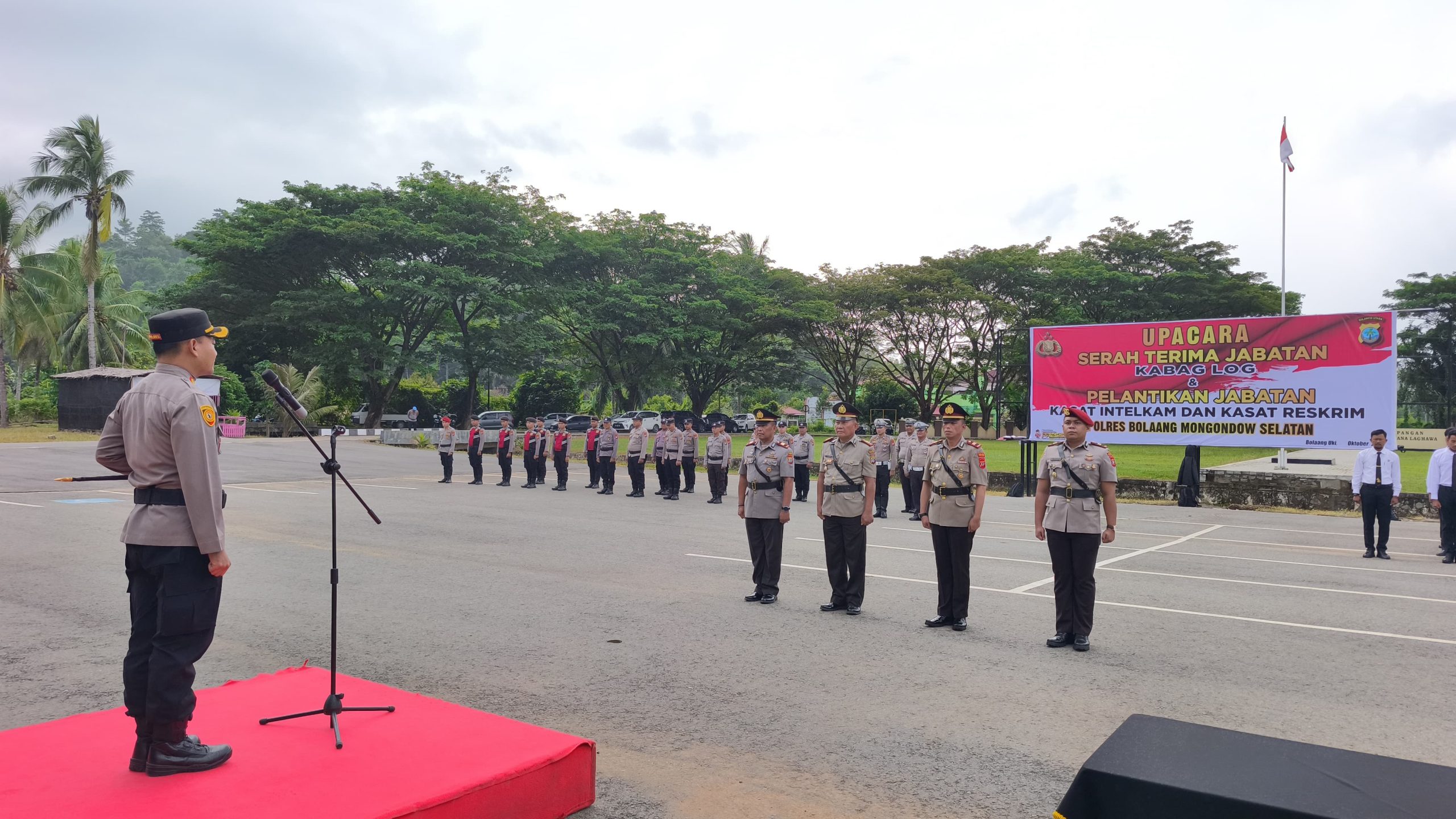 Telusur.news, BOLSEL – Kepolisian Resor (Polres) Bolaang Mongondow Selatan (Bolsel) melaksanakan upacara serah terima jabatan (Sertijab) Kabag Log serta pelantikan Kasat Intelkam dan Kasat Reskrim.