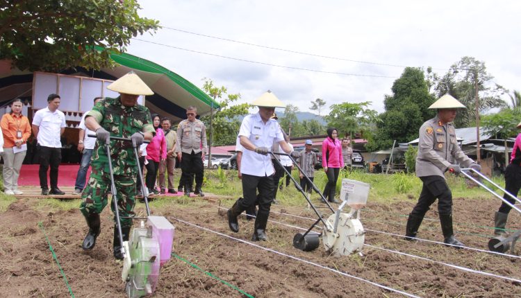 Penanaman Jagung Serentak Kuartal IV yang dilaksanakan Polres Kota Kotamobagu dalam rangka mendukung Swasembada Pangan Nasional Tahun 2025, dihadiri Kapolres Kotamobagu, AKBP Irwanto, S.I.K., M.H., Wakapolres Kotamobagu, Kompol. Romel Pontoh, S.I.P., M.A.P., Kasdim 1303 Bolaang Mongondow Mayor Arh. Achmad Janis, perwakilan Forkopimda Kota Kotamobagu, Kepala BPS Kota Kotamobagu Jasni Makalunsenge, S.E., M.Si., Kepala Perum Bulog Sub Divre Bolaang Mongondow Ismail Aziz, serta para pejabat di lingkungan Polres Kota Kotamobagu.