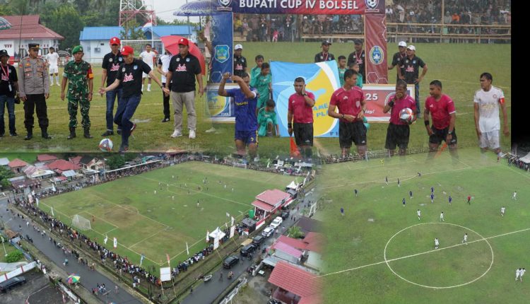 Telusur.news, BOLSEL – Turnamen Sepak Bola Bupati Cup IV Tahun 2025 resmi dibuka oleh Bupati Bolaang Mongondow Selatan, H. Iskandar Kamaru, bersama Wakil Bupati Deddy Abdul Hamid di Lapangan Garuda Desa Pinolosian, Kecamatan Pinolosian. Selasa, (21/10/2025).