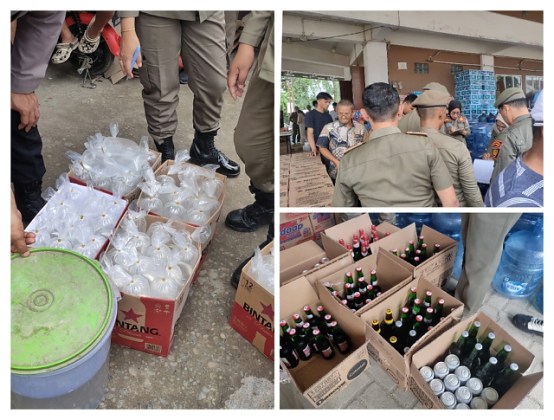 Total keseluruhan hasil sitaan mencapai 1.279 karton, 323 botol, 33 kaleng, 135 kantong, dan setengah tong minuman beralkohol.