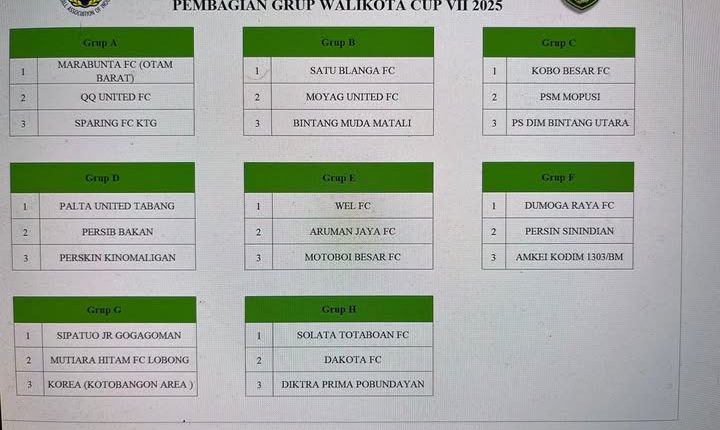 Ajang bergengsi yang diikuti 24 tim ini resmi menandai dimulainya rangkaian kompetisi sepak bola tahunan di Kota Kotamobagu. Dari hasil undian, Grup C menjadi sorotan karena berisi tim-tim kuat seperti Kobo Besar FC, PSM Mopusi, dan PS Dim Bintang Utara, yang diprediksi menghadirkan persaingan ketat sejak awal.