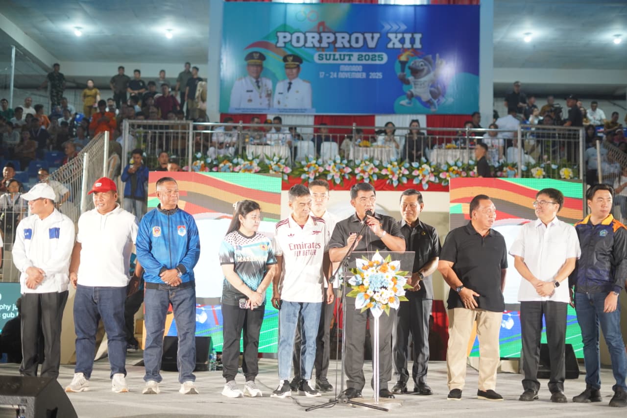 Acara ini turut dihadiri Wakil Gubernur Sulut, Ketua TP-PKK Sulut, jajaran Forkopimda, para kepala daerah, tamu undangan, serta seluruh kontingen dari kabupaten/kota peserta Porprov XII.