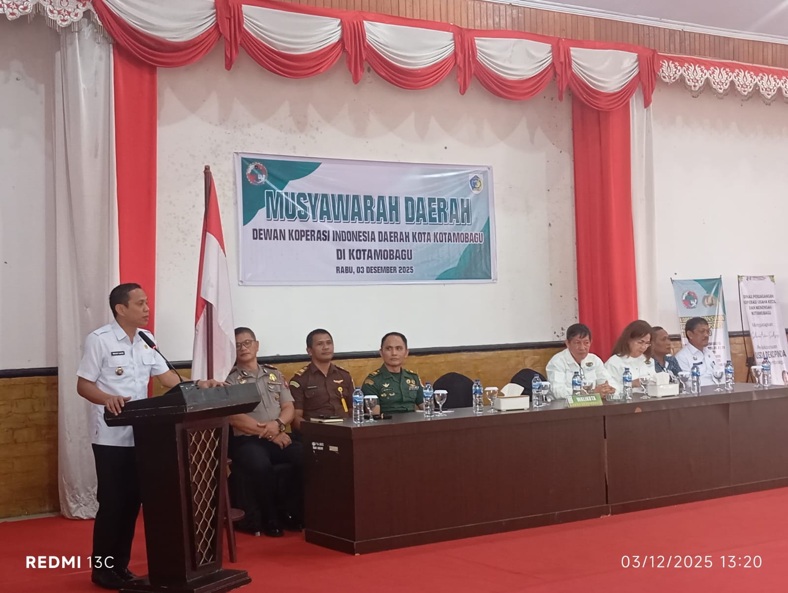 Penguatan koperasi menjadi fokus pemerintah pusat dan daerah, Wali Kota Weny Gaib buka Musda Dekopin Kotamobagu 2025.