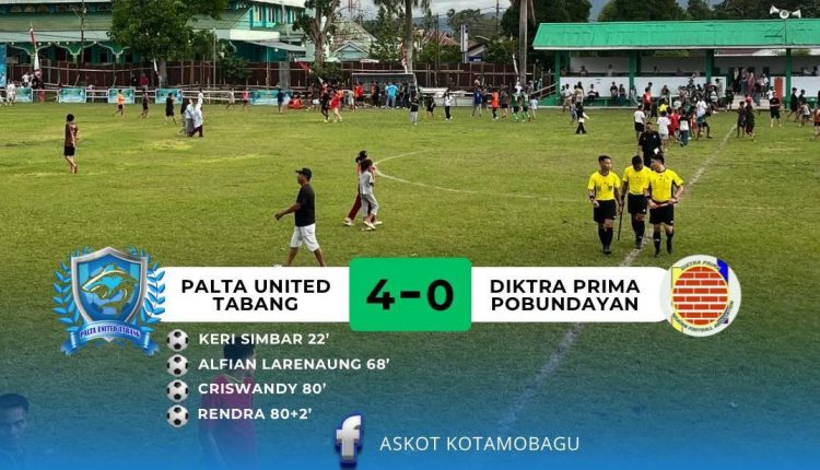 Telusur.news, KOTAMOBAGU — Palta United Tabang kembali menunjukkan tajinya di ajang Turnamen Wali Kota Cup VII. Bermain penuh percaya diri di Lapangan Aruman Jaya, Motoboi Kecil, Senin (8/12/2025), skuad Tabang itu melaju ke babak 8 besar setelah membungkam Diktra Prima Pobundayan dengan skor meyakinkan 4–0.