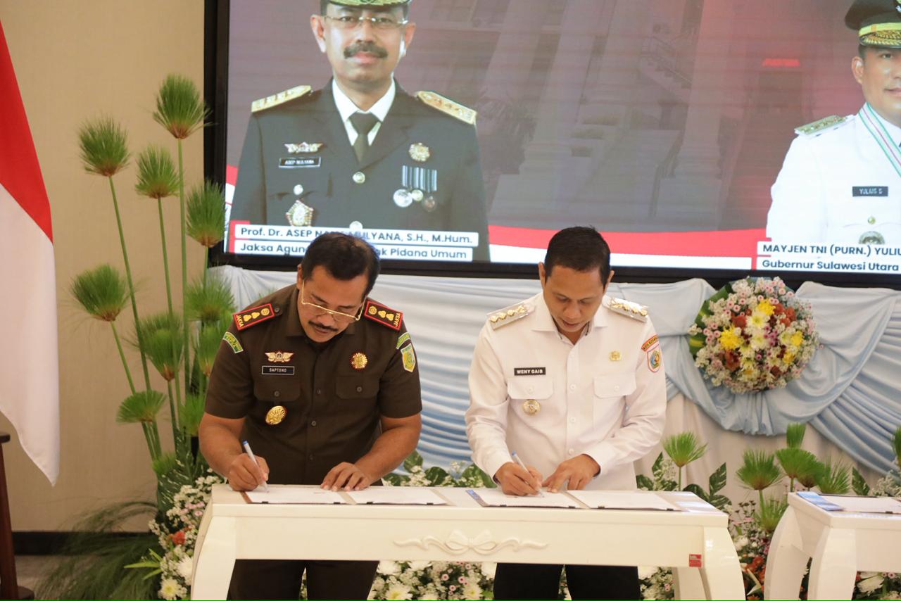 Penandatanganan ini turut dihadiri: Gubernur Sulawesi Utara, Mayjen TNI (Purn) Yulius Selvanus, S.E., Jampidum Kejaksaan Agung RI, diwakili Direktur A Dr. Hari Wibowo, S.H., M.H., Ketua DPRD Provinsi Sulut, dr. Fransiscus Silangen, Sp.B., Kbd., Kajati Sulut, Jacob Hendrik Pattipeilohy, S.H., M.H., Perwakilan Forkopimda Sulut, para bupati, wali kota, serta kepala kejaksaan negeri se–Sulawesi Utara.