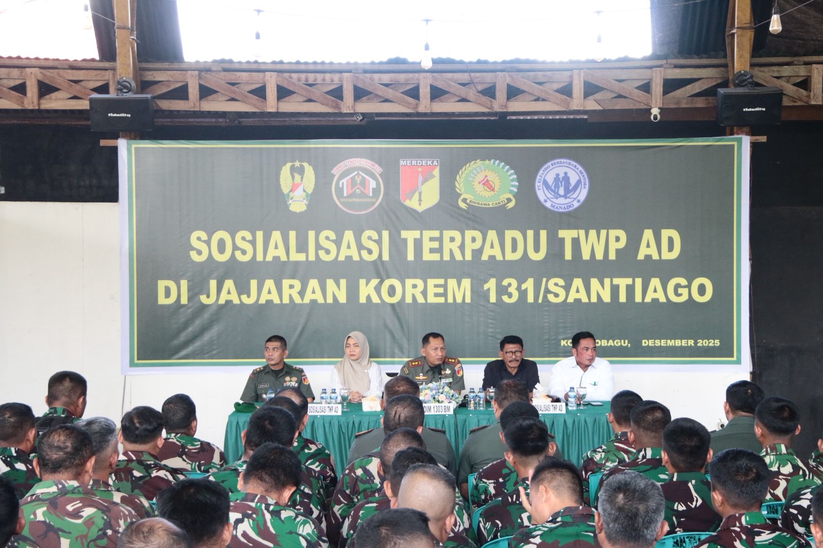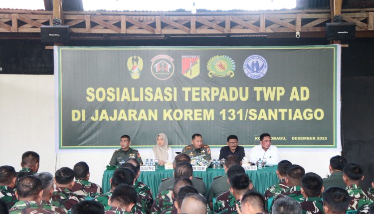 Telusur.news, KOTAMOBAGU – Kodim 1303/Bolaang Mongondow (BM) melaksanakan Sosialisasi Terpadu Tabungan Wajib Perumahan (TWP) TNI Angkatan Darat kepada prajurit jajaran Korem 131/Santiago yang berada di wilayah Bolaang Mongondow, Senin (15/12/2025).