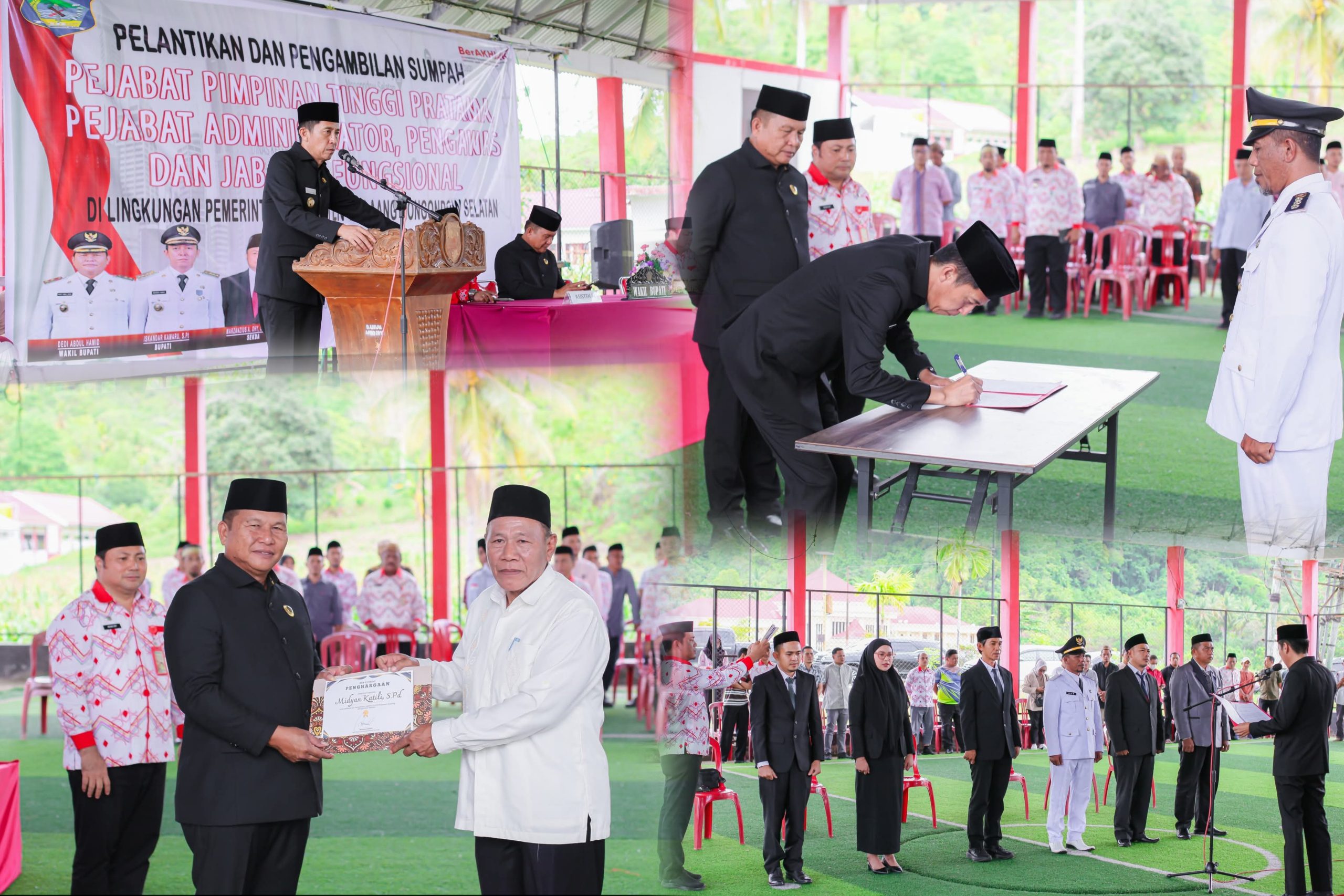 Telusur.news, BOLSEL – Dinamika organisasi di lingkungan Pemerintah Kabupaten Bolaang Mongondow Selatan (Bolsel) kembali bergulir. Bertempat di Lapangan Futsal Kawasan Perkantoran Panango, Kecamatan Bolaang Uki, Bupati Iskandar Kamaru secara resmi melantik dan mengambil sumpah/janji jabatan Pejabat Administrator dan Pengawas Tahun 2026, pada Jumat pagi, (20/02/2026).