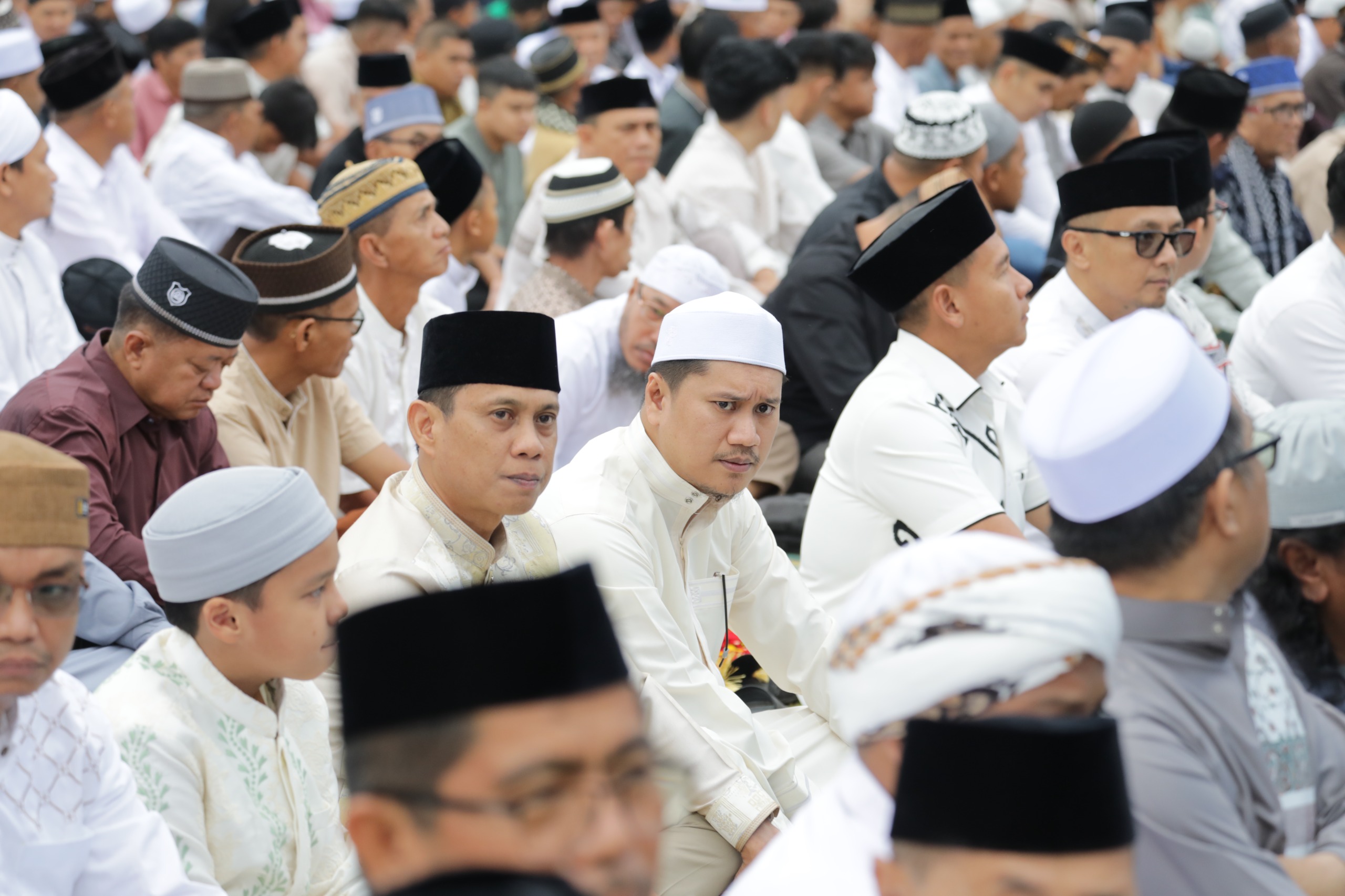 Pelaksanaan Sholat Idul Fitri berlangsung tertib dan lancar. Hal ini mencerminkan sinergi yang kuat antara pemerintah daerah, aparat keamanan, dan masyarakat dalam menjaga kekhusyukan ibadah.